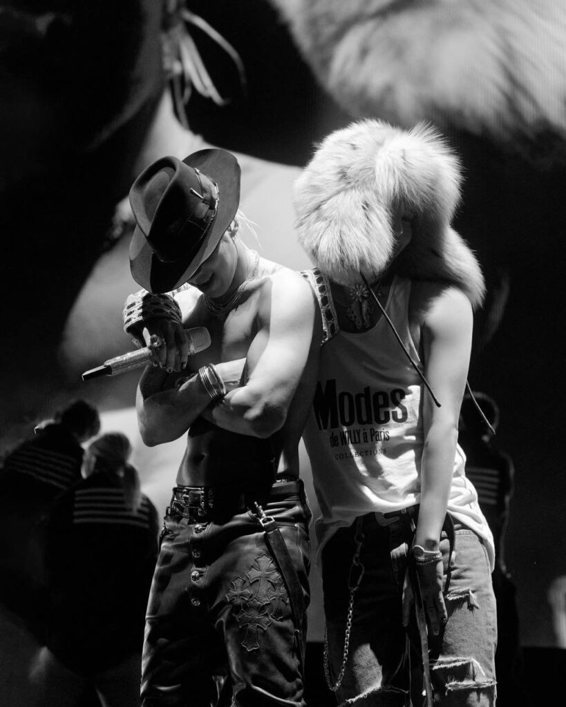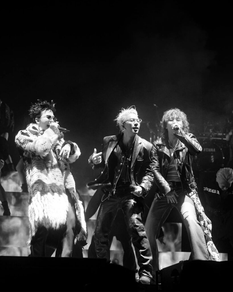 빅뱅이 돌아왔습니다. 빅뱅은 공백기가 무색할 만큼 완벽한 퍼포먼스와 쉴 틈 없이 쏟아지는 화려한 무대의상으로 코첼라를 장악했습니다. 세 멤버는 각자의 개성을 극대화한 스타일링으로 무대를 채웠는데요. 지드래곤은 풍성한 볼륨감이 돋보이는 샤넬 퍼 코트를, 태양은 레더 재킷과 베스트를 매치한 ‘올 레더 룩’에 크롬하츠 액세서리로 묵직한 포인트를 주었습니다. 대성 역시 레더 바이커 재킷과 디스트로이드 데님에 허리 라인의 스카프 연출로 거친 록 시크 무드를 가감 없이 드러냈습니다.