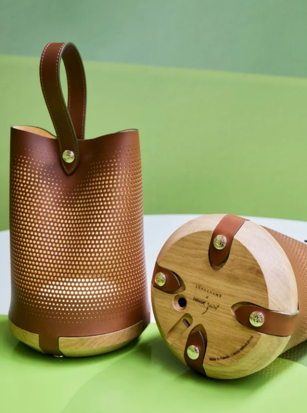 라이트 그린 염색 디테일을 더한 가죽 테두리로 섬세한 변주를 준 ‘OLO’ 암체어도 있습니다. 가죽 시트의 절단면을 섬세하게 메운 롱샴의 시그니처 엣지 다잉(Edge Dyeing) 디테일은 ‘OLO’ 암체어를 단순한 가구가 아닌, 앉는 기능을 수행하는 하나의 정교한 공예품으로 완성시켜주죠. 하지만 이번 컬렉션의 하이라이트를 꼽으라면 10점 한정으로 출시되는 ‘OSTARA’ 램프일 것입니다. 봄의 춘분에서 영감을 얻은 이 조명은 따뜻한 질감의 오크 우드 베이스와 마이크로 펀칭 처리된 풀그레인 가죽이 완벽한 대비를 이룹니다. 충전식 LED를 탑재한 모듈식 디자인은 실용적일 뿐만 아니라, 재활용 소재를 적극적으로 활용해 지속 가능한 디자인의 미래를 몸소 보여줍니다.