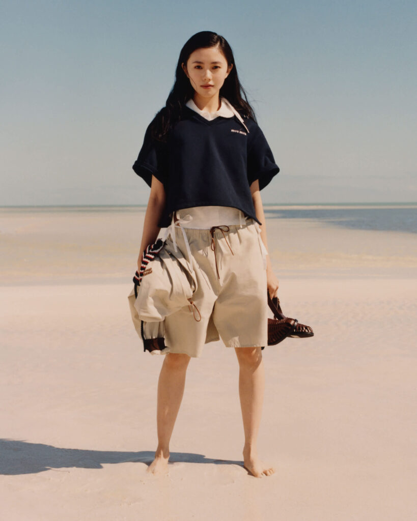 여유로운 여름의 감각과 프레피 무드 그리고 위트 있는 액세서리까지, 햇빛과 수평선이 흐려지는 해변에서 펼쳐진 미우미우 2026 레떼 캠페인.