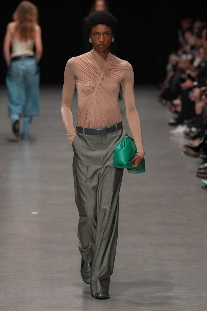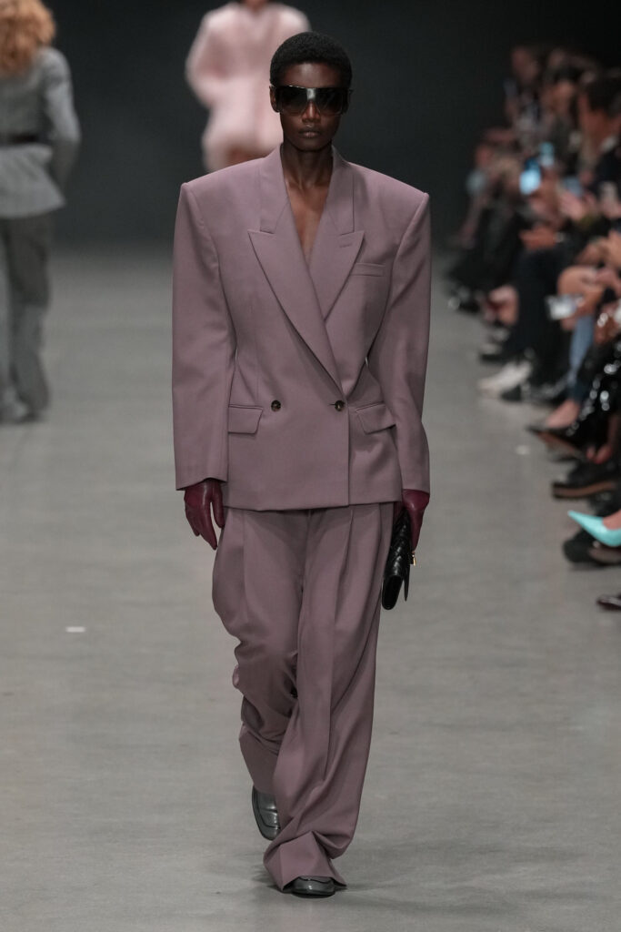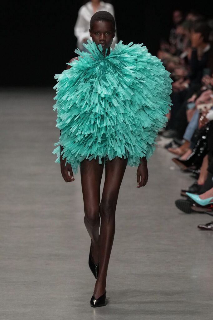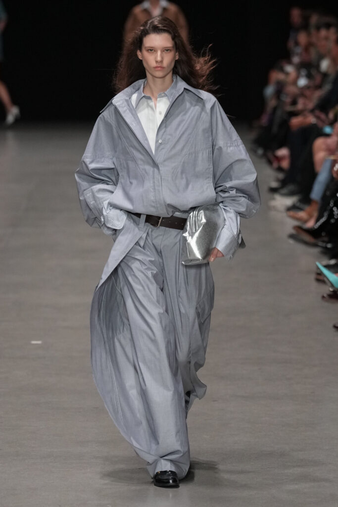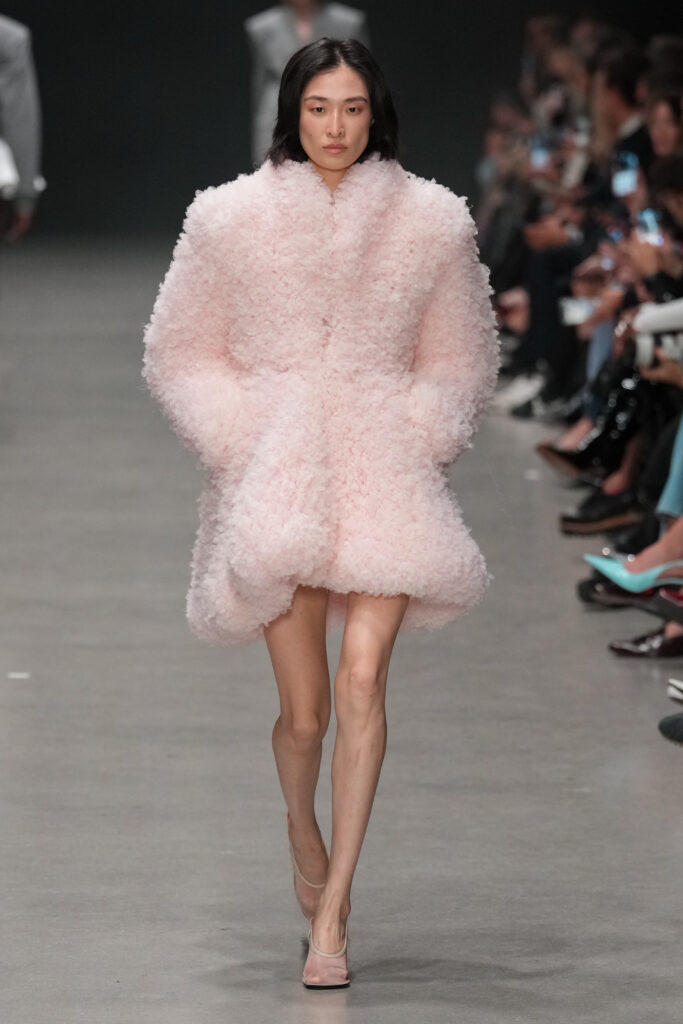NOTE 비틀스의 ‘Come Together’ 리믹스 버전이 울려 퍼지며 쇼가 시작됐다. 스텔라 매카트니는 매 시즌 이어온 윤리적 메시지를 ‘함께 모이는 미래’라는 주제로 확장하며, 98% 지속 가능 소재와 비동물성 소재로 컬렉션을 채웠다. 어깨를 과장한 테일러링과 퍼프 볼 실루엣의 오버사이즈 코트 등 하우스 특유의 구조적인 실루엣은 쇼에 생동감을 더했다. 피날레에 등장한 드레스는 깃털을 대체하는 식물성 소재 ‘피버스(FEVVERS)’로 제작해 자연과 인간, 동물의 공존을 상징한다. 스텔라가 구축해온 윤리적 패션의 기준은 이번 시즌 더욱 단단해졌다.