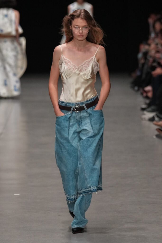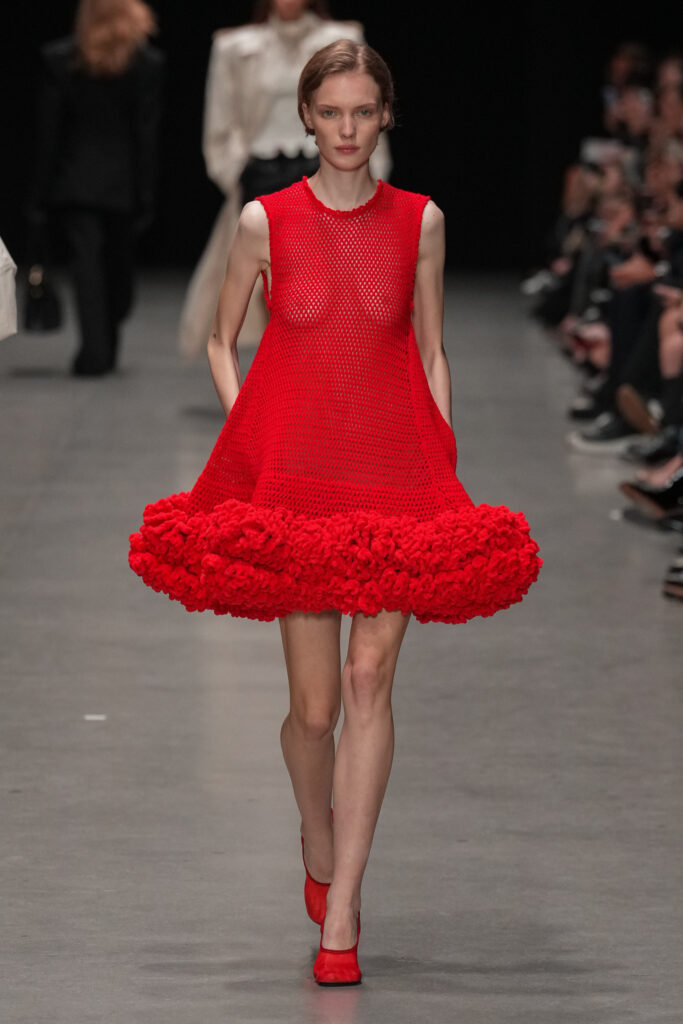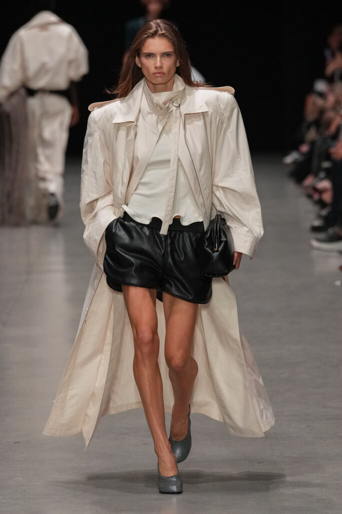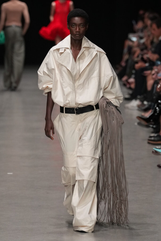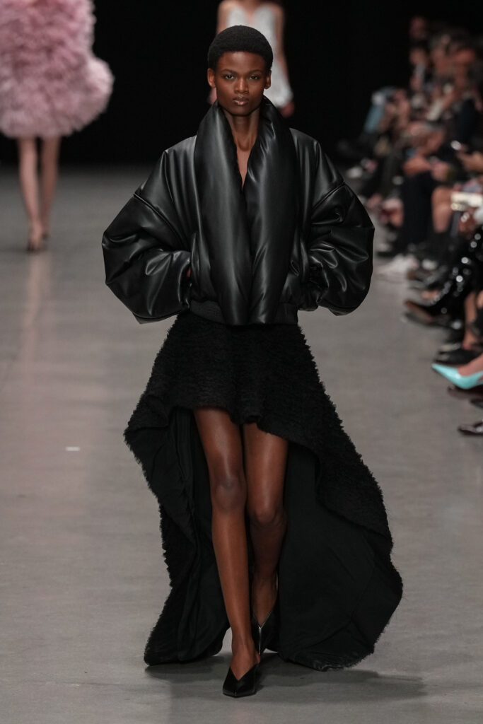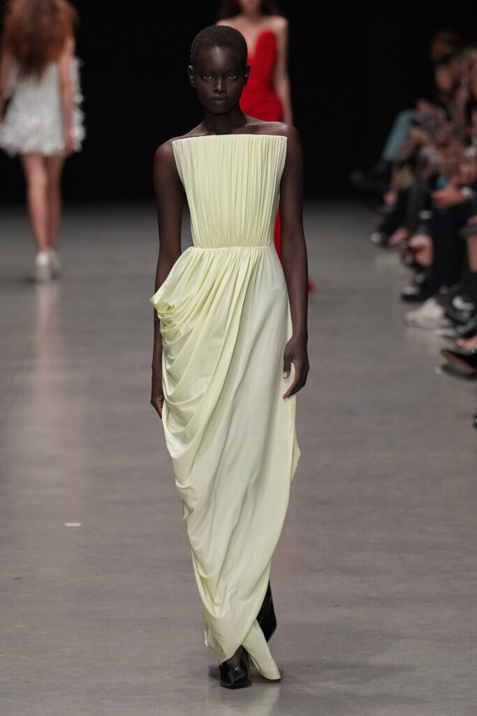 NOTE 비틀스의 ‘Come Together’ 리믹스 버전이 울려 퍼지며 쇼가 시작됐다. 스텔라 매카트니는 매 시즌 이어온 윤리적 메시지를 ‘함께 모이는 미래’라는 주제로 확장하며, 98% 지속 가능 소재와 비동물성 소재로 컬렉션을 채웠다. 어깨를 과장한 테일러링과 퍼프 볼 실루엣의 오버사이즈 코트 등 하우스 특유의 구조적인 실루엣은 쇼에 생동감을 더했다. 피날레에 등장한 드레스는 깃털을 대체하는 식물성 소재 ‘피버스(FEVVERS)’로 제작해 자연과 인간, 동물의 공존을 상징한다. 스텔라가 구축해온 윤리적 패션의 기준은 이번 시즌 더욱 단단해졌다.